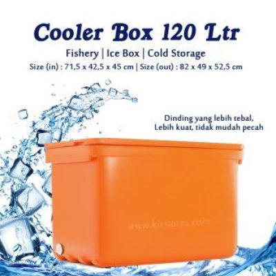 Cooler Box ini berkapasitas 120 Liter Dibuat dengan bahan plastik Polyethylene (PE) sehingga tidak mudah pecah dan tahan terhadap benturan.Di bekali dengan teknologi Max Cool System, cooler box ini mampu menahan suhu di dalam box tetap dingin. Selain itu, box pendingin ini sangat ekonomis, ramah lingkungan dan tahan lama karena terbuat dari plastik polyethylene murni.